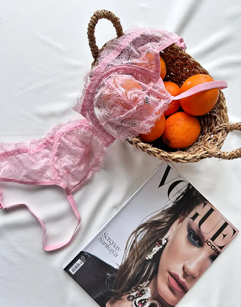 Fransız dantelinin büyüleyici dokusu ve satenin pürüzsüz hissiyatı ile tasarlanan yeni sezon koleksiyonumuzu keşfedin. Kendinizi her an özel ve şık hissetmeniz için özenle hazırlanan parçalar burada.